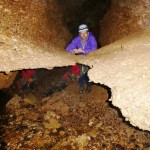 Sgattaiolando in fila indiana siamo arrivati tutti alla Sala Madonna; pausa per ammirare il salone e poi giù verso il meandro attivo. Non c'era moltissima acqua, tranne un paio di pozze più profonde del resto del corso d'acqua; qualcuno è passato indenne, io ammetto di aver fatto entrare acqua nello stivale, per fortuna l'escursione è breve.