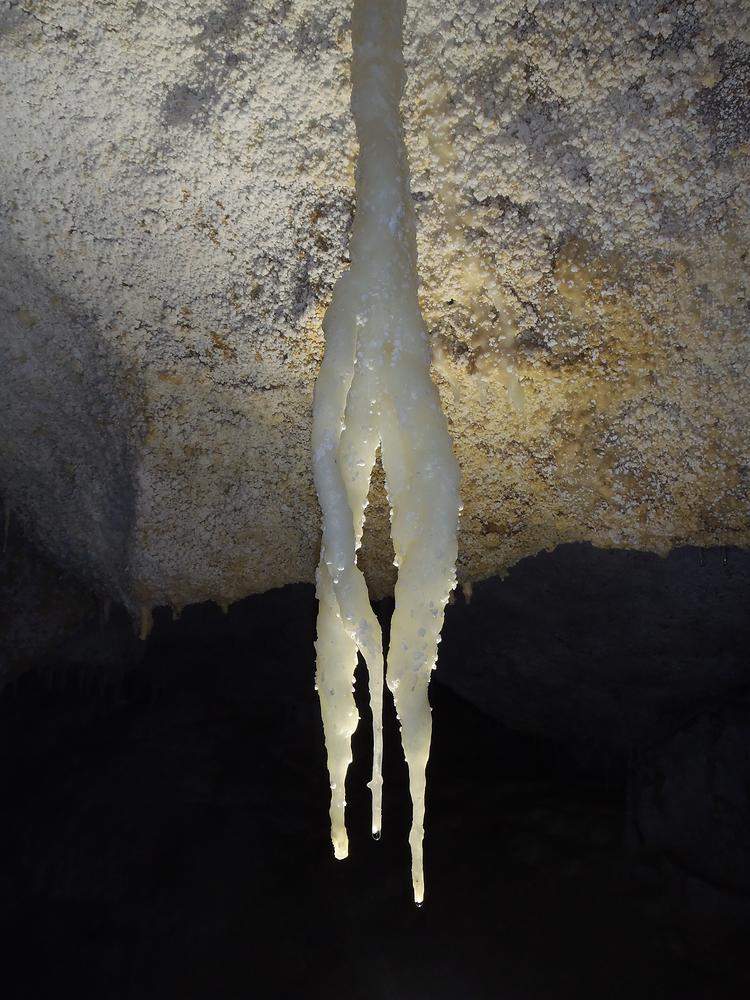 Arriviamo presto all’ingresso turistico dove, firmati i permessi, entriamo assieme ai visitatori, percorrendo rapidamente (troppo rapidamente! Anche se visto mille volte è sempre uno spettacolo) il percorso di passerelle, fino al punto estremo. Dopo di che scavalchiamo la balaustra e ci infiliamo in un passaggio. Un attimo di pausa per mettere a punto le illuminazioni a carburo che hanno i nostri ospiti e si parte. (Incredibile, ma ancora il “profumo” di carburo e la sua luce calda, smuovono ricordi passati…)
