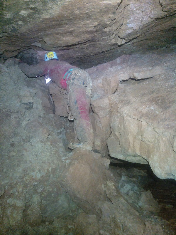 Obiettivo della giornata: arrampicare il camino trovato nelle zone nuove ed armare un traverso in un punto non difficile da passare ma molto esposto (vedi le esplorazioni precedenti).